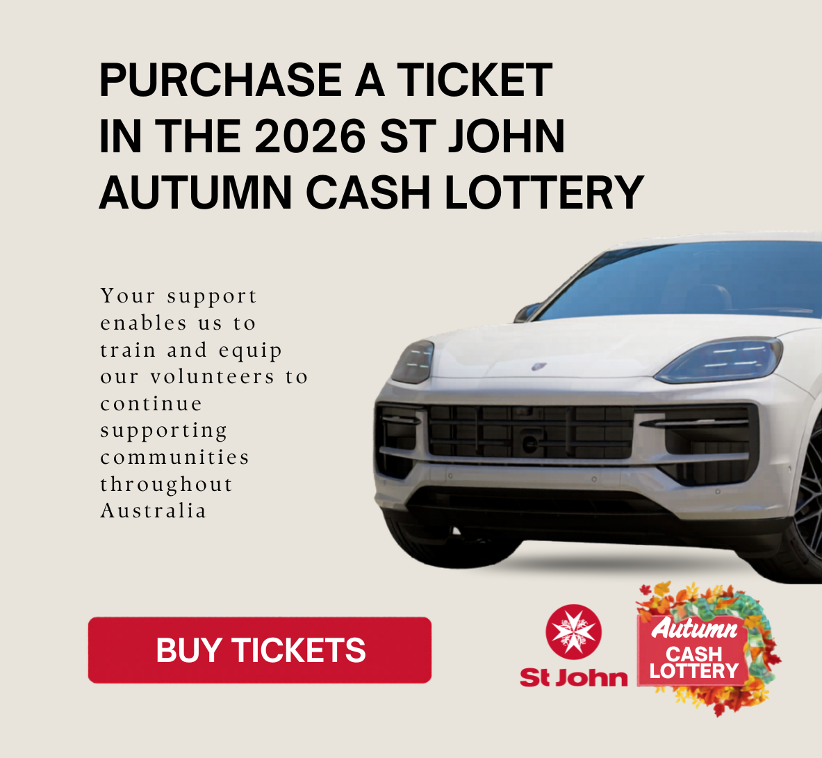 Joining the St John Lottery is a simple way to stand behind the volunteers who show up for our communities every day. Your participation helps ensure our people are equipped with the training, resources and confidence they need to respond in emergencies, support public events, and share life-saving skills with others. Behind every ticket is a ripple effect — helping volunteers continue to care for, protect and strengthen communities across Australia.